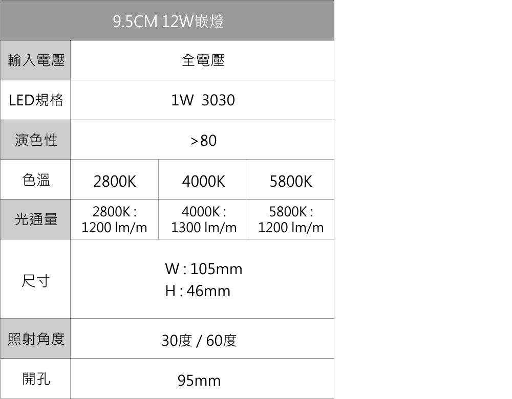 9.5CM 12W嵌燈